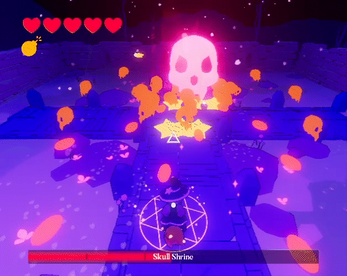 Fight the evil Skull Shrine as a cartoon witch in this top-down 3D bullet hell game!